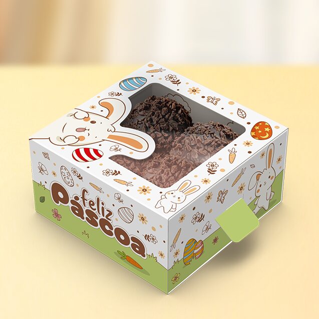 A Caixa 4 Doces Gaveta com Visor da linha Páscoa Colorir une criatividade e praticidade. Com ilustração para colorir e visor transparente, oferece uma experiência interativa e encantadora.