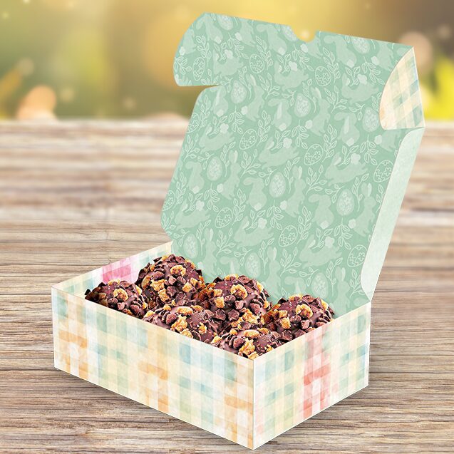 A Caixa 6 Doces Practice da linha Páscoa Encantos oferece elegância e funcionalidade. Com acabamento refinado e estrutura firme, é ideal para doces finos e lembranças personalizadas.