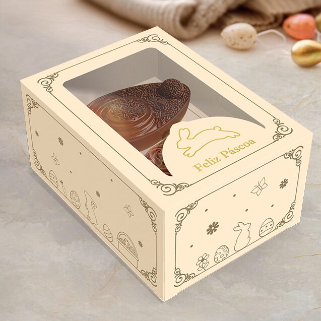 Com acabamento em hot stamping ouro e visor frontal, valoriza doces e lembranças especiais.