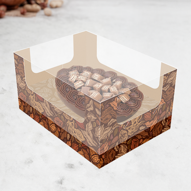 A Caixa Ovo de Colher Encanto (150g a 250g) da linha Puro Cacau combina elegância e resistência. Com design moderno e acabamento sofisticado, é ideal para produtos artesanais premium.