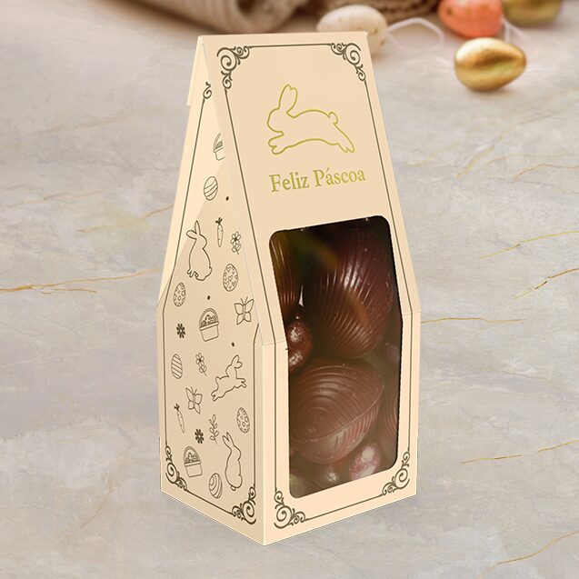 Com visor transparente e acabamento em hot stamping ouro, é ideal para doces finos e lembranças.