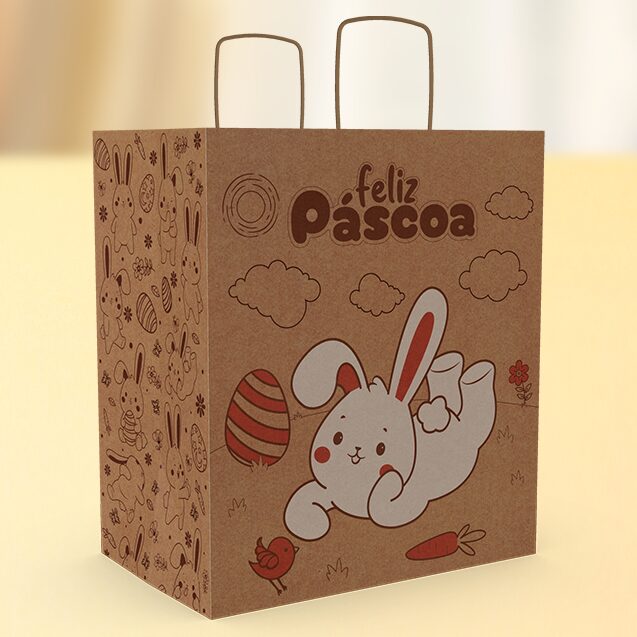 A Sacola Eco G da linha Páscoa Colorir é ampla e sustentável.